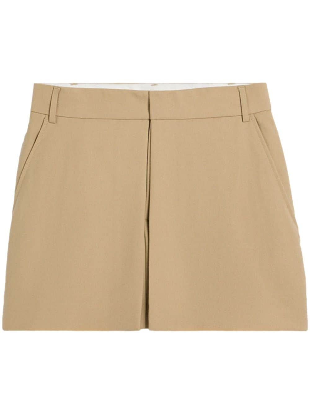 panelled mini skirt Highlights - Almond beige - Wool - Twill weave - Panelled design - High-rise - Belt loops - Pleat detailing - Concealed front zip fastening - Slip pockets to the sides - Two rear button-fastening jetted pockets - Thigh-length - Straight hem Imported Composition Wool 100%