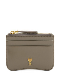 Paris Paris leather cardholder Highlights - Grey - Glazed finish - Zip-fastening coin pocket - Card slots - Gold-tone hardware - Signature ami de coeur monogram Imported Composition Outer: Calf Leather 100% SIZE & FIT Measurement LENGTH 4.13 in(10.5 cm) WIDTH 2.95 in(7.5 cm)