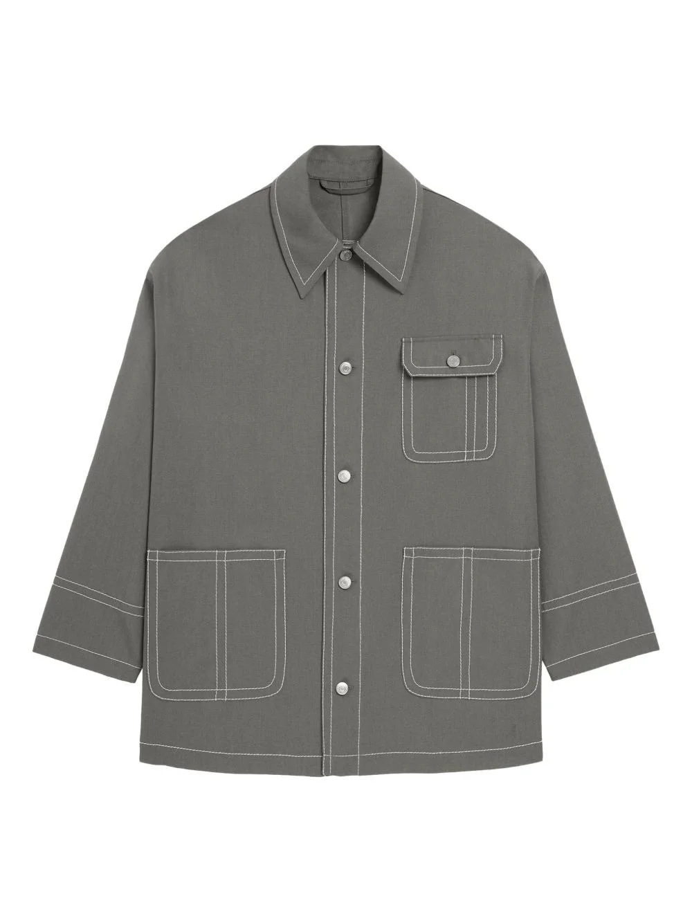 patch-pocket topstitch worker jacket Highlights - Grey - Topstitch detail - Regular collar - Front button fastening - Front patch pockets - Back buttoned tabs Imported Composition Fabric 100% Washing instructions Dry Clean Only