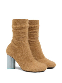 Piano 120mm ankle boots Highlights - Camel brown - Brushed wool knit - Block heel - Leather sole - Leather insole Imported Composition Outer: Mohair 100% Lining: Calf Leather 100% Sole: Calf Leather 100% SIZE & FIT Measurement HEEL 4.72 in(12 cm)