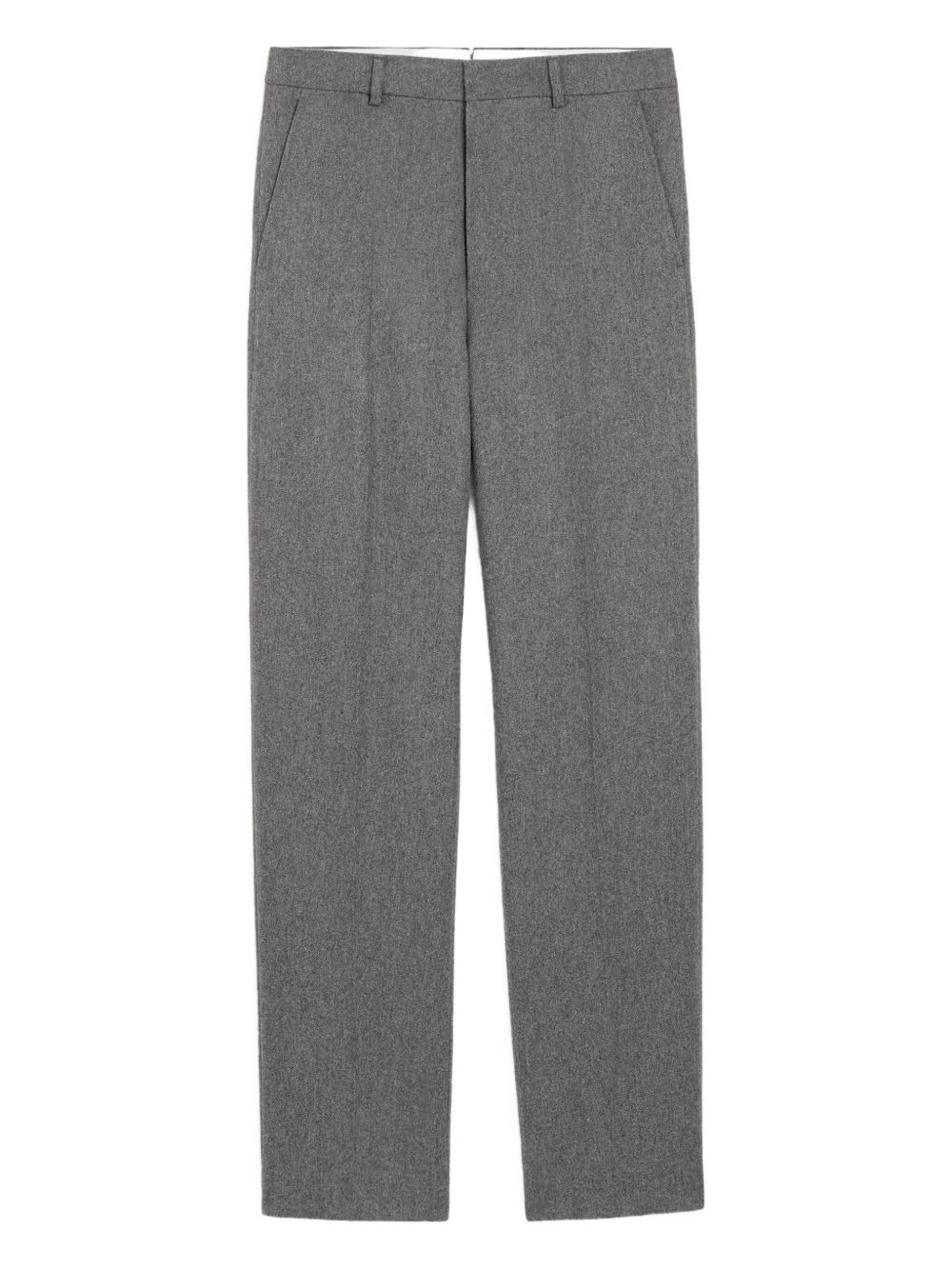 wool wide-leg trousers Highlights - Grey - Front pleats - Concealed buttoned fly - Side slit pockets - Rear jetted buttoned pockets Imported Composition Wool 100% Washing instructions Dry Clean Only