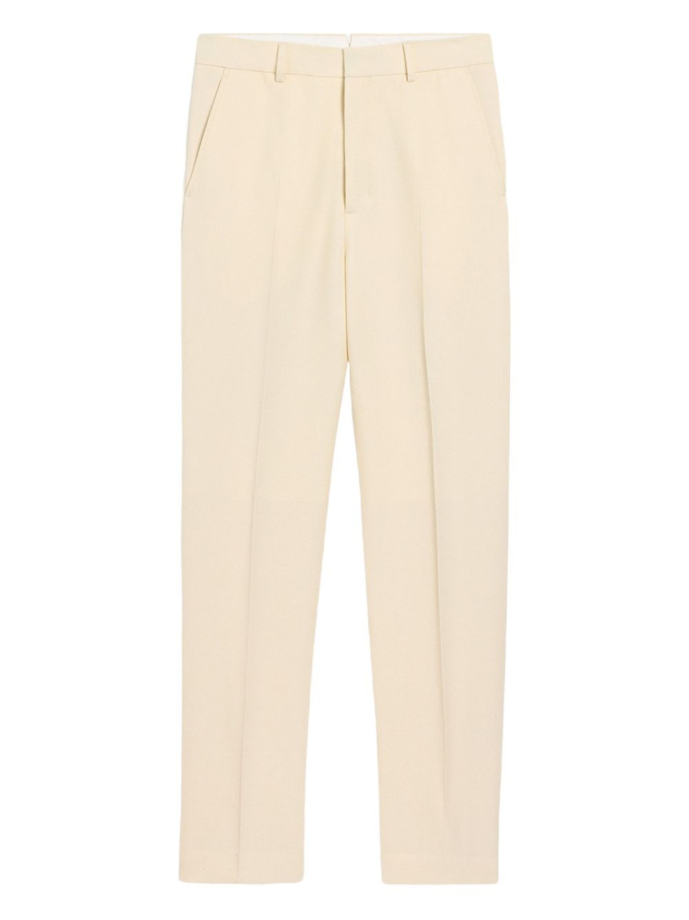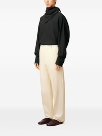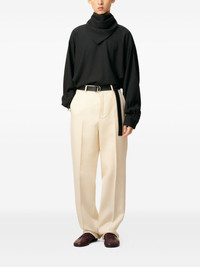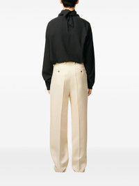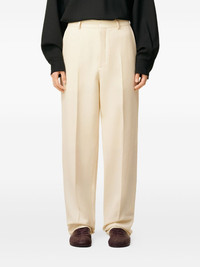 wool wide-leg trousers Highlights - Ivory - Front pleats - Concealed front buttoned fly - Side slit pockets - Rear buttoned jetted pockets Imported Composition Outer: Virgin Wool 100% Lining: Polyester 50%, Cotton 50% Washing instructions Read Manufacturer Guidelines