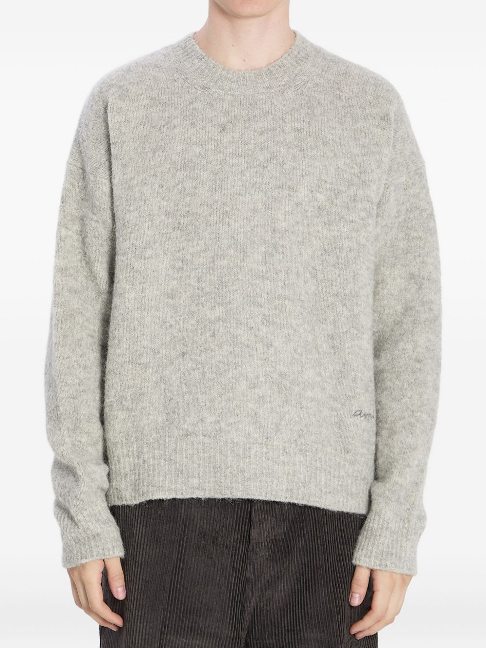 ribbed crewneck sweater Highlights - Light grey - Ribbed crewneck - Long sleeves - Ribbed hem - Ribbed cuffs - Embroidered logo Made in Italy Composition Alpaca 42%, Merino 40%, Polyamide 16%, Elastane 2% Washing instructions Read Manufacturer Guidelines