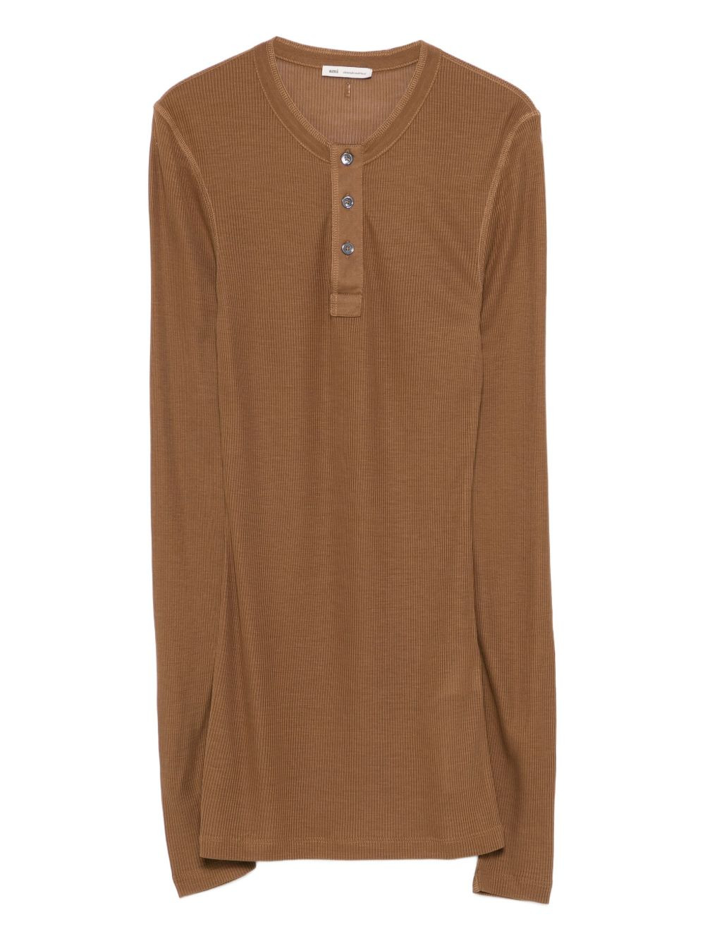 ribbed henley top Highlights - Brown - Ribbed texture - Henley neckline - Long sleeves - Button placket Imported Composition Lyocell 100% Washing instructions Hand Wash