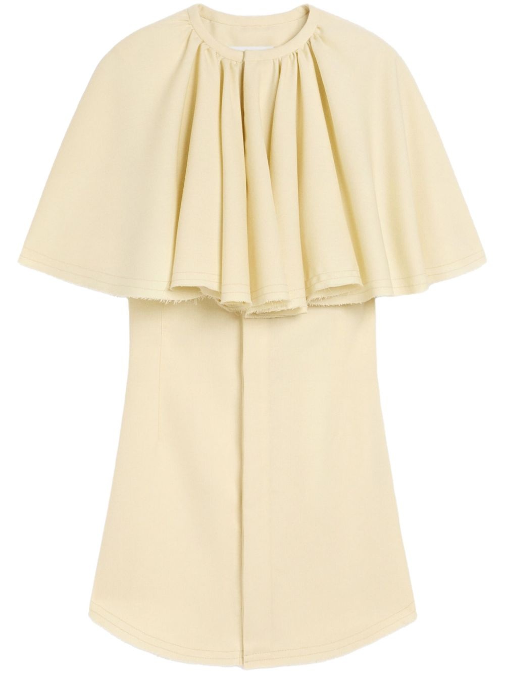 ruffle-detail dress Highlights - Butter yellow - Concealed front fastening - Round neck - Cape design - Raw edge Imported Composition Wool 100%