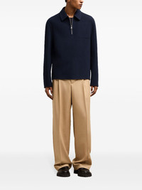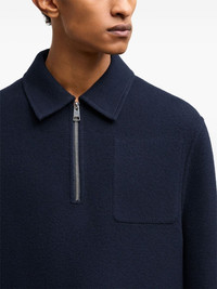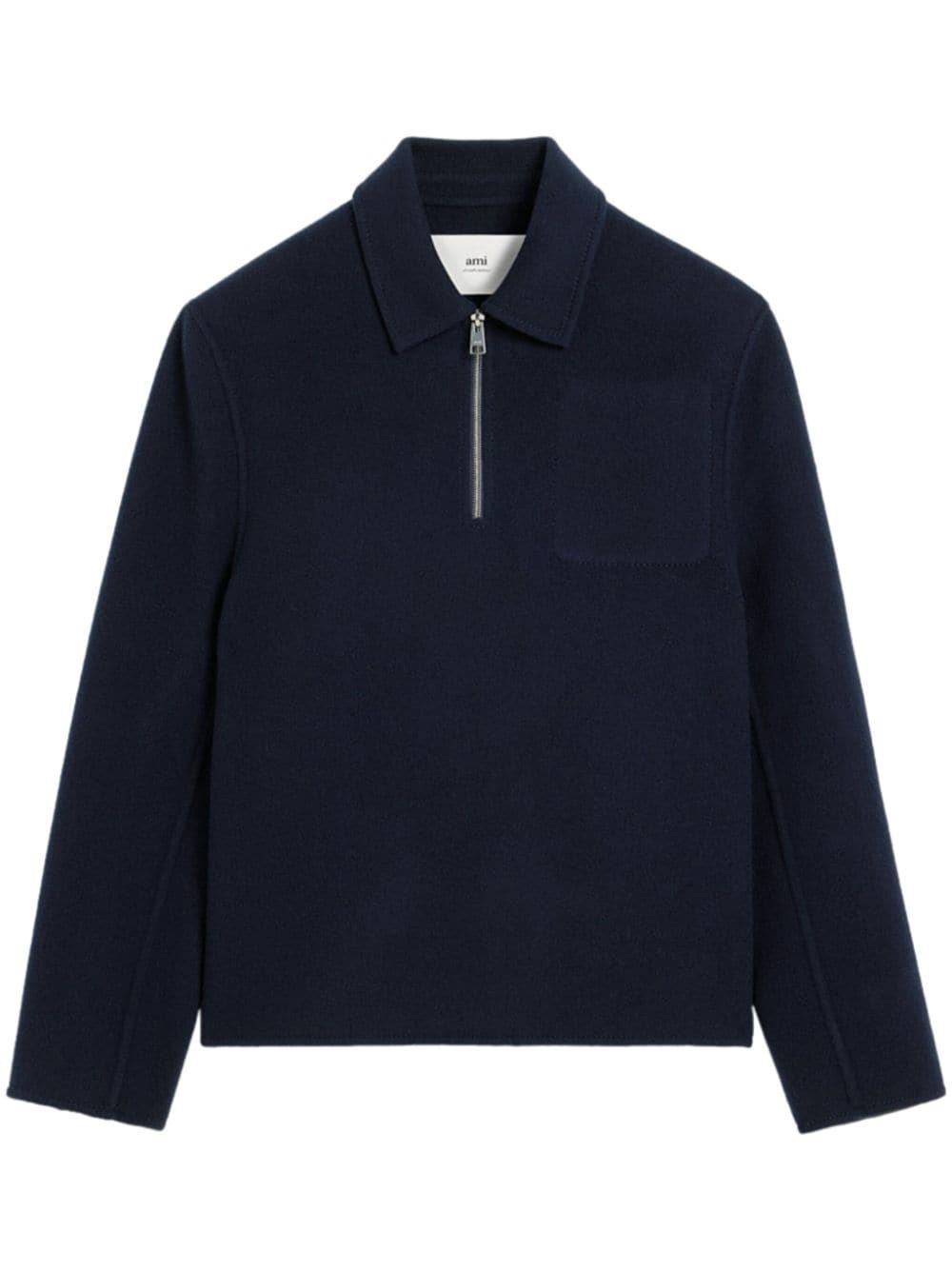 semi zipped wool-cashmere blend jacket Highlights - Navy blue - Cashmere-wool blend - Fleece texture - Short front zip fastening - Straight-point collar - Chest patch pocket Imported Composition Wool 90%, Cashmere 10%