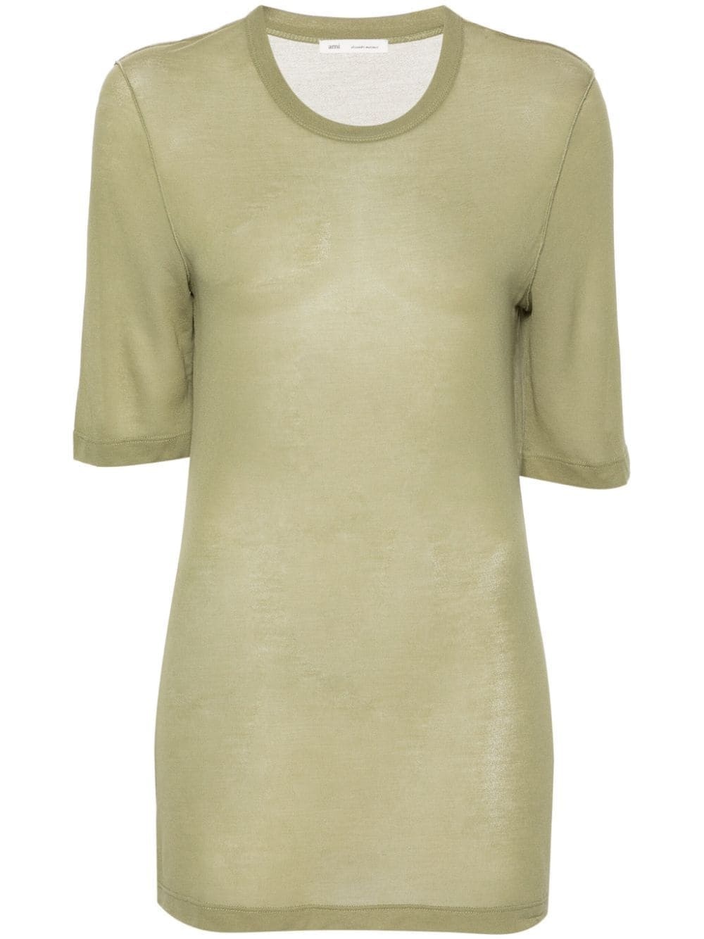 sheer lyocell T-shirt Highlights - Olive green - Lyocell - Semi-sheer construction - Inside-out effect seams - Crew neck - Short sleeves - Straight hem Imported Composition Lyocell 100%