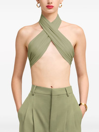 silk wrap top Highlights - Olive green - Silk - Halterneck - Wrap design - Rear tie fastening - Cropped Imported Composition Silk 100% Washing instructions Read Manufacturer Guidelines