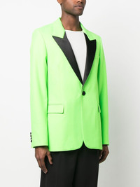 single-breasted blazer Highlights - Lime green - Virgin wool blend - Notched lapels - Front button fastening - Chest welt pocket - Two front flap pockets - Central rear vent - Straight hem - When buying this unisex item, keep in mind that it is graded in standard men's sizing. Imported Composition Outer: Polyester 100%, Acrylic 50%, Virgin Wool 50% Lining: Polyester 50%, Cotton 50% SIZE & FIT Model measurements Height 6 ft 2 in(1.88 m) Bust/Chest 36.61 in(93 cm) Hips 35.82 in(91 cm) Waist 27.95 in(71 cm) Washing instructions Dry Clean Only