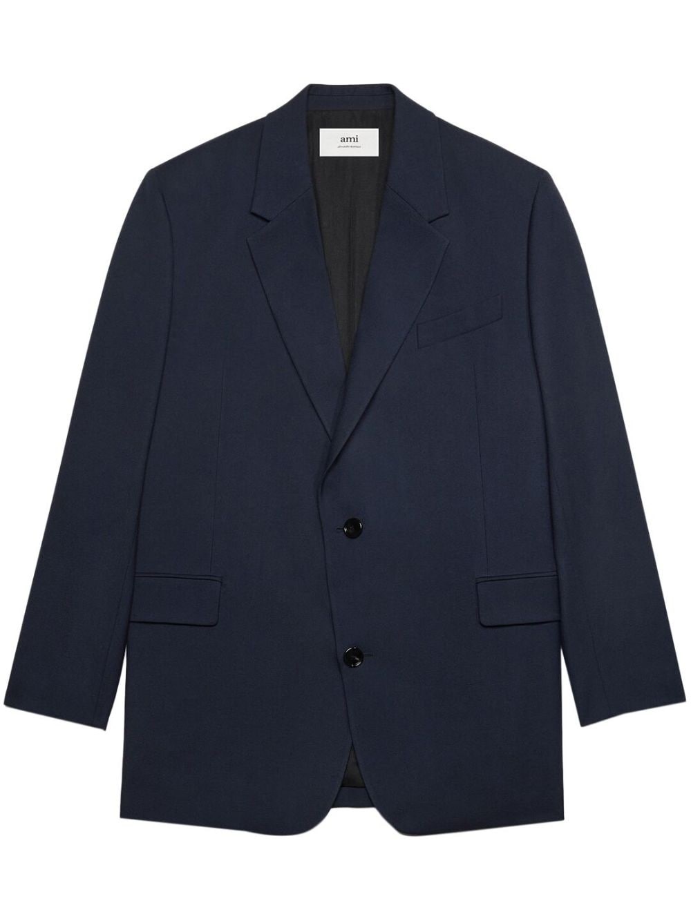 single-breasted blazer Conceived as a 'brand for friends', AMI Paris offers stylish clothes, blurring the boundaries between casual and chic. As seen in this navy blue single-breasted blazer, crafted from wool, and with a relaxed oversize fit. Highlights - Navy blue - Virgin wool - Notched lapels - Jetted chest pocket - Front button placket - Two side flap pockets - Long sleeves - Central rear vent Imported Composition Virgin Wool 100%
