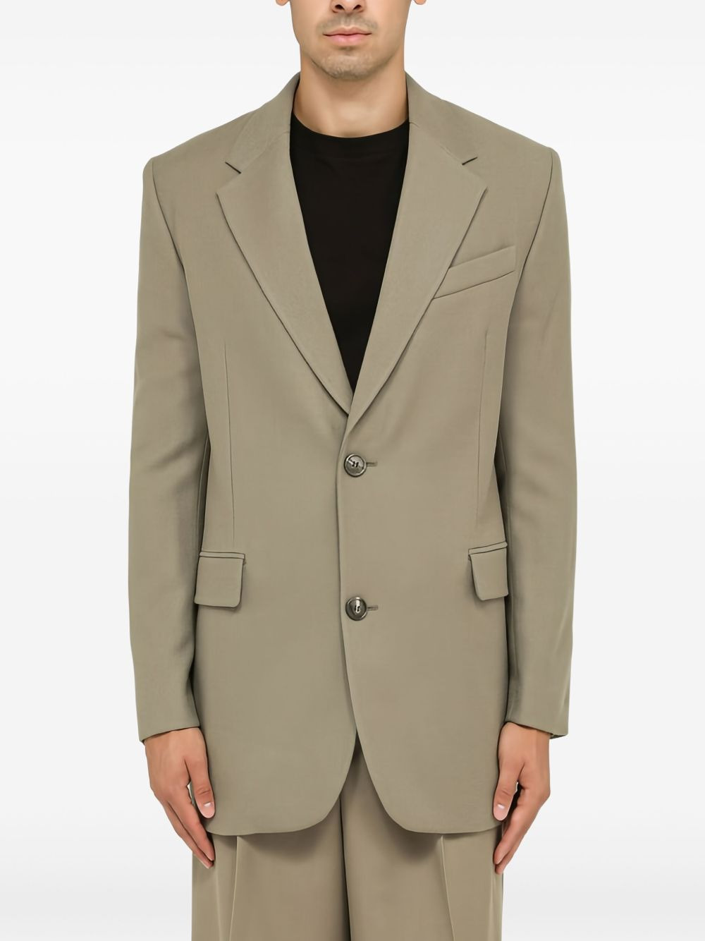 single-breasted virgin-wool blazer AMI Paris' natural affinity for confident, easy dressing is masterfully captured in the clean lines of this single-breasted blazer. Riffing on a classic silhouette, it's defined by its single-breasted fastening. Highlights - Taupe grey - Virgin wool - Notched lapels - Front button fastening - Long sleeves - Buttoned cuffs - Chest welt pocket - Two front flap pockets - Central rear vent Imported Composition Outer: Virgin Wool 100% Lining: Polyester 50%, Cotton 50%