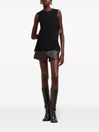 crepe tank top Highlights - Black - Crepe texture - Round neck - Rear zip fastening - Sleeveless - Straight hem Imported Composition Acetate 73%, Viscose 27% Washing instructions Read Manufacturer Guidelines