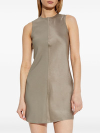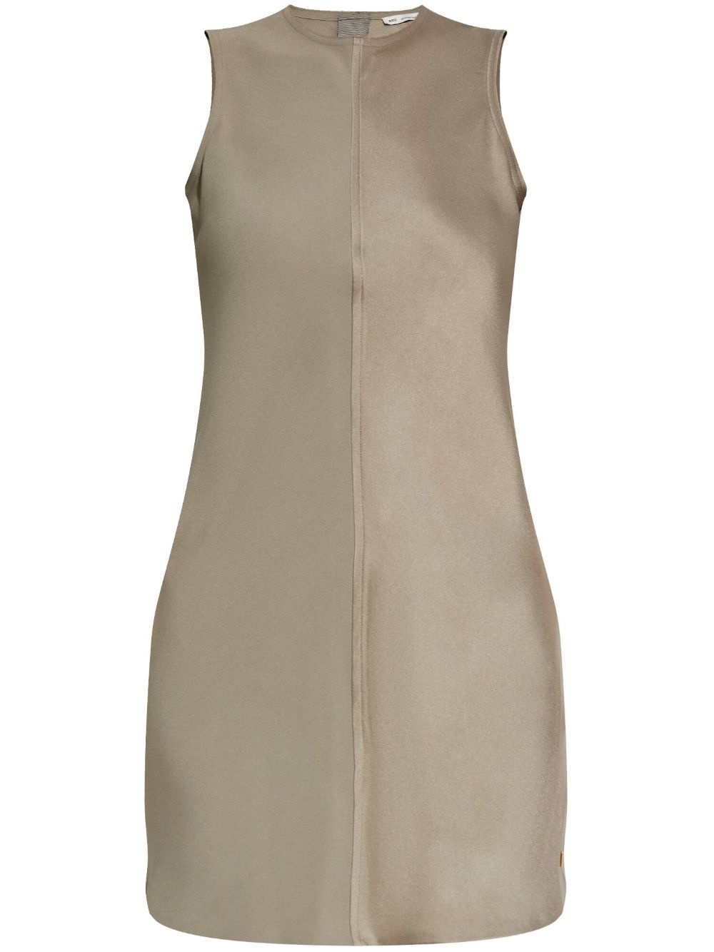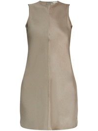 sleeveless mini dress Highlights - Taupe grey - Rear zip fastening - Round neck - Sleeveless - Straight hem Imported Composition Acetate 71%, Viscose 29%