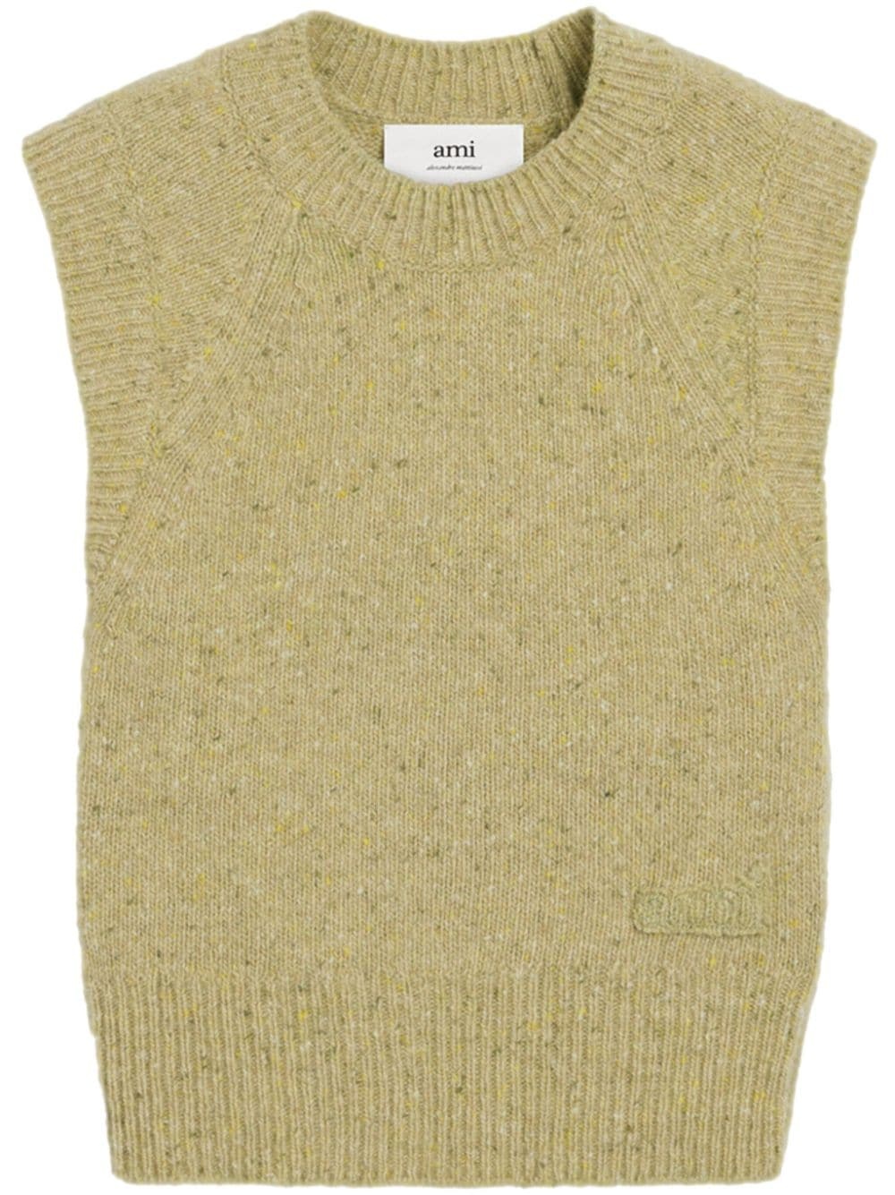 logo-embroidered vest Highlights - Chartreuse - Virgin wool blend - Speckle knit - Ribbed detailing - Round neck - Sleeveless - Cropped Made in Italy Composition Virgin Wool 80%, Polyamide 20% Washing instructions Read Manufacturer Guidelines