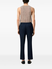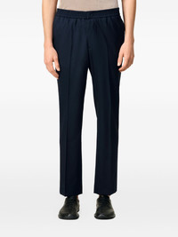 straight-leg wool trousers Highlights - Navy blue - Wool - Concealed front fastening - Rear elasticated waistband - Straight leg - Two side inset pockets - Two rear welt pockets Imported Composition Wool 100%
