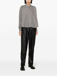striped cropped cotton shirt Highlights - White/black - Cotton - Poplin texture - Vertical stripe pattern - Classic collar - Concealed front button fastening - Drop shoulder - Long wide sleeves with buttoned cuffs - Curved cropped hem Imported Composition Cotton 100% SIZE & FIT Model measurements Height 5 ft 10 in(1.78 m) Bust/Chest 29.92 in(76 cm) Hips 34.64 in(88 cm) Waist 23.62 in(60 cm) FittingInformation Designed to be unstructured, offering a loose fit throughout Made from a midweight non-stretch fabric This piece fits true to size – take your usual size