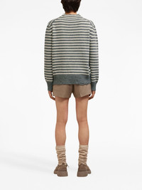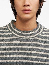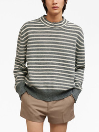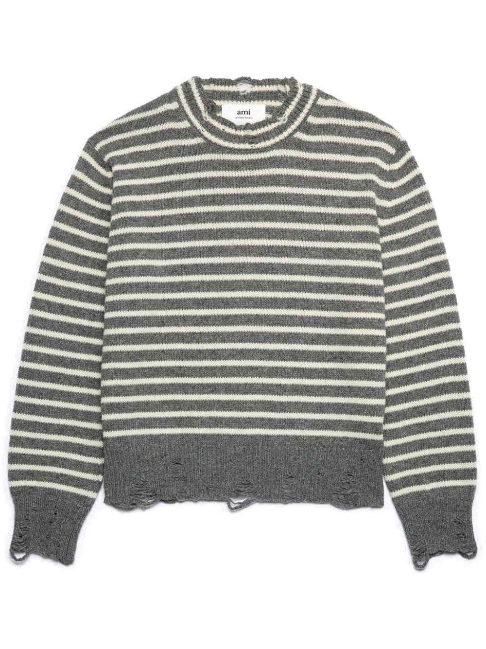 striped wool jumper Showcasing the signature nonchalant style at the heart of AMI Paris, this jumper is spun from a soft wool blend and minimally detailed with a horizontal stripe pattern. Subtle distressing appears at the edges for an undone feel. Highlights - Grey - Wool - Horizontal stripe pattern - Distressed effect - Crew neck - Long sleeves - Ribbed trim - When buying this unisex item, keep in mind that it is graded in standard men's sizing. Imported Composition Wool 100% Washing instructions Dry Clean Only