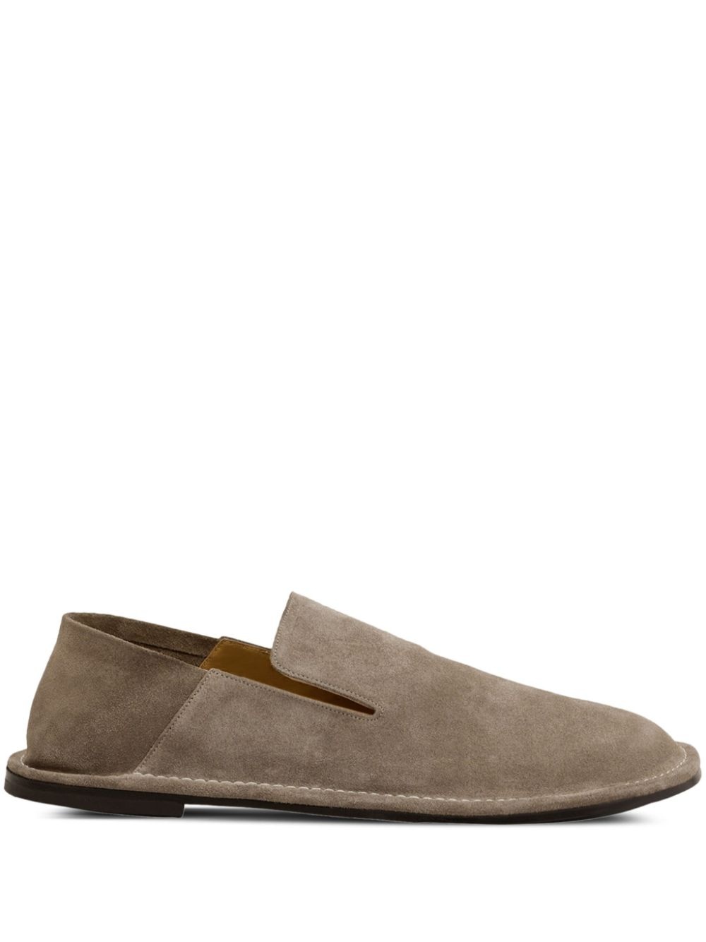 suede slippers Highlights - Taupe - Panelled design - Round toe - Flat leather sole - Branded leather insole Imported Composition Sole: Leather 100% Lining: CALFSKIN 100% Outer: CALFSKIN 100%