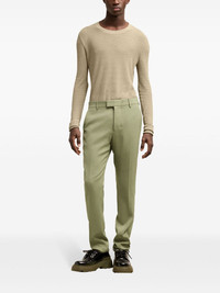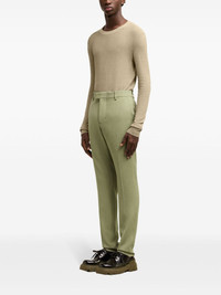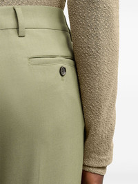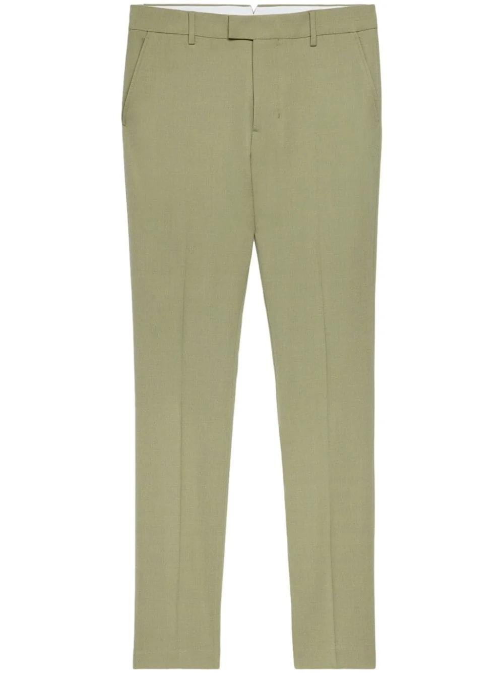 tailored trousers Highlights - Olive green - Virgin wool blend - Mid-rise - Belt loops - Concealed front button, hook and zip fastening - Slip pockets to the sides - Two rear button-fastening pockets - Pressed crease - Slim cut Imported Composition Viscose 55%, Virgin Wool 45% SIZE & FIT Measurement INSIDE LEG 36.22 in(92 cm) FRONT RISE 11.02 in(28 cm) HIPS 37.79 in(96 cm) Washing instructions Read Manufacturer Guidelines