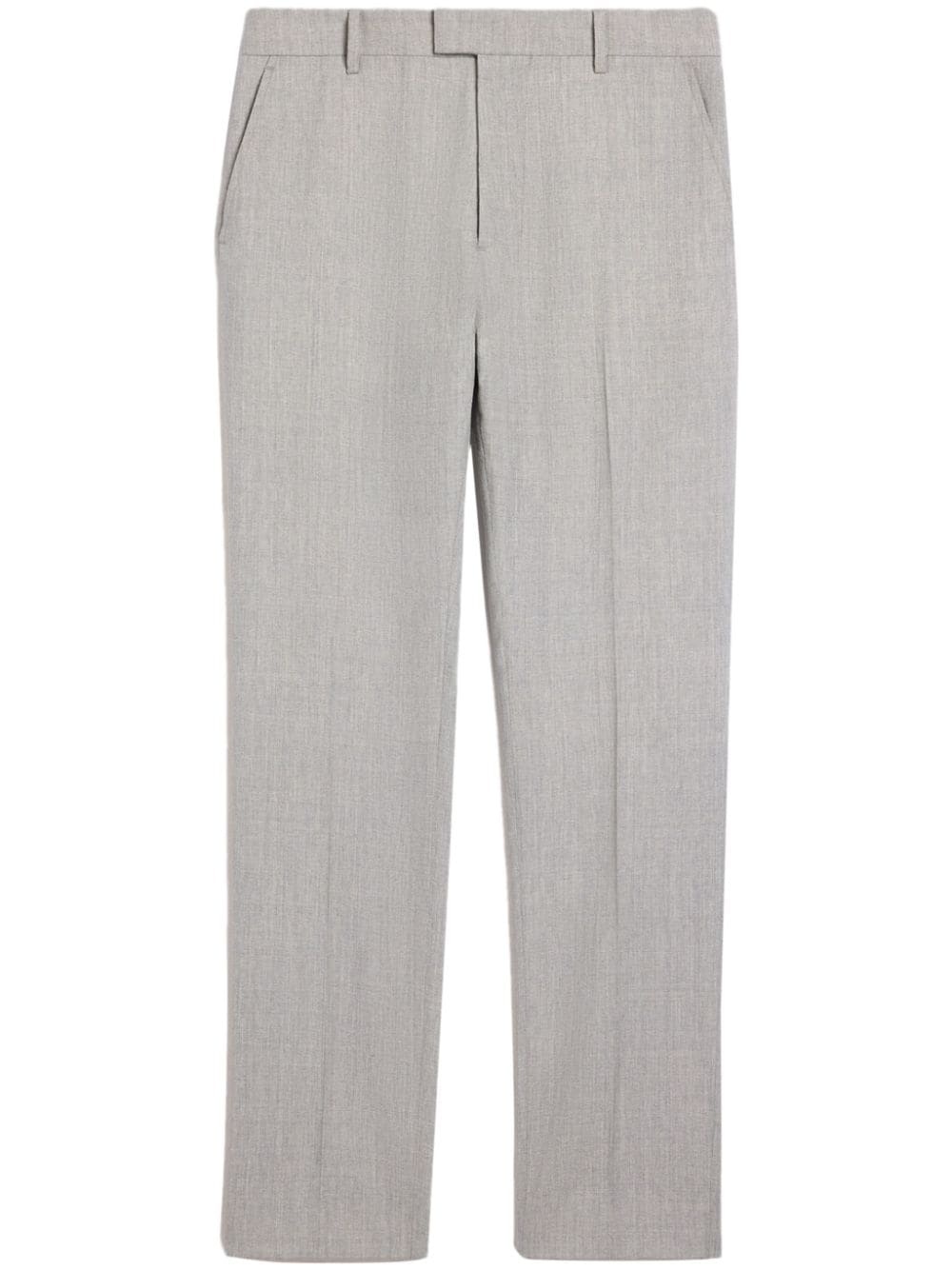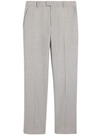 tailored virgin wool trousers Highlights - Light grey - Virgin wool - Textured finish - Tailored design - Pressed crease - Concealed front button, hook and zip fastening - Tapered leg - Two side slit pockets - Two rear button-fastening jetted pockets Imported Composition Virgin Wool 100% Washing instructions Read Manufacturer Guidelines