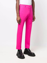 tailored wool trousers AMI Paris adds a distinctive finish to a classic silhouette with these trousers from their latest collection. Presented in a striking hot pink hue, the pair showacases a timelessly tailored design crafted exclusively from soft wool. Highlights - Hot pink - Wool - Belt loops - Concealed front fastening - Two side inset pockets - Two rear button-fastening pockets Imported Composition Wool 100% SIZE & FIT Model measurements Height 6 ft 2 in(1.88 m) Bust/Chest 36.61 in(93 cm) Hips 35.82 in(91 cm) Waist 27.95 in(71 cm) FittingInformation This piece fits true to size. We recommend you get your regular size Cut for a slim fit Made with a mid-weight fabric Washing instructions Dry Clean Only