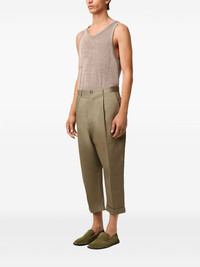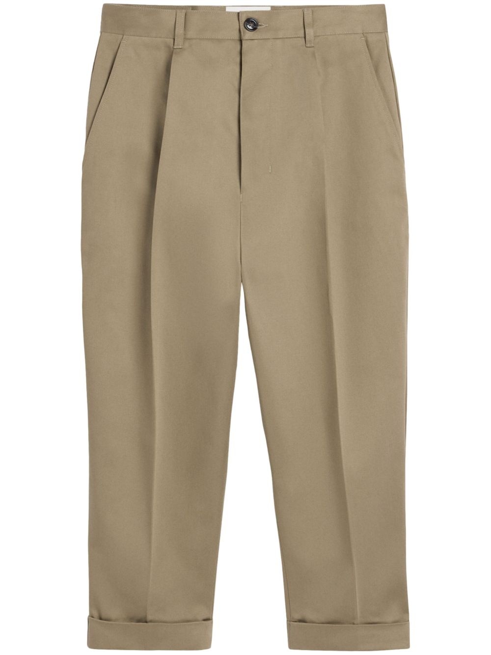 tapered-leg trousers Highlights - Beige - Concealed fly and button fastening - Two side inset pockets - Two button-fastening pockets - Belt loops Imported Composition Cotton 100% Washing instructions Machine Wash