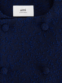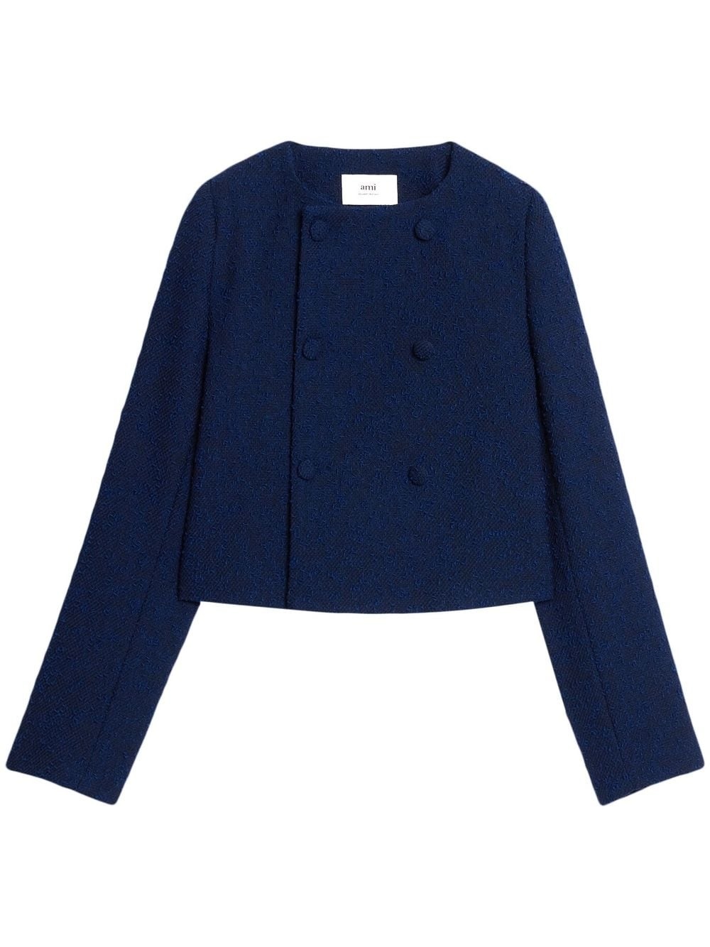 textured cropped jacket AMI Paris' SS23 collection acts as a love letter to Paris, masterfully capturing the brand's natural affinity for confident, easy dressing. Riffing on a vintage silhouette, this blue cropped jacket is decorated with textured detailing and tonal buttons. Imported Composition Outer: Virgin Wool 45%, Polyester 44%, Cotton 6%, Polyamide 5% Lining: Cotton 50%, Polyester 50%