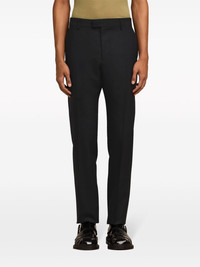 twill tapered-leg trousers Highlights - Black - Virgin wool - Twill weave - Pressed crease - Dart detailing - Low-rise - Tapered leg - Belt loops - Two side inset pockets - Two rear button-fastening pockets - Concealed front button, hook and zip fastening - Unlined Imported Composition Cotton 100% SIZE & FIT Measurement FRONT RISE 12.2 in(31 cm) INSIDE LEG 36.22 in(92 cm) HIPS 43.3 in(110 cm) Washing instructions Read Manufacturer Guidelines