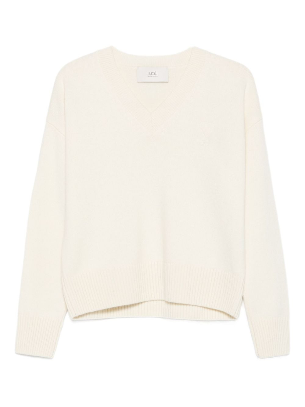 V-neck sweater Highlights - White - V-neck - Long sleeves - Ribbed cuffs - Ribbed hem Made in Italy Composition Wool 90%, Cashmere 10% SIZE & FIT Model measurements Height 5 ft 9 in(1.75 m) Bust/Chest 32.67 in(83 cm) Hips 36.22 in(92 cm) Waist 24.8 in(63 cm) Washing instructions Hand Wash