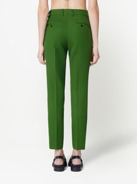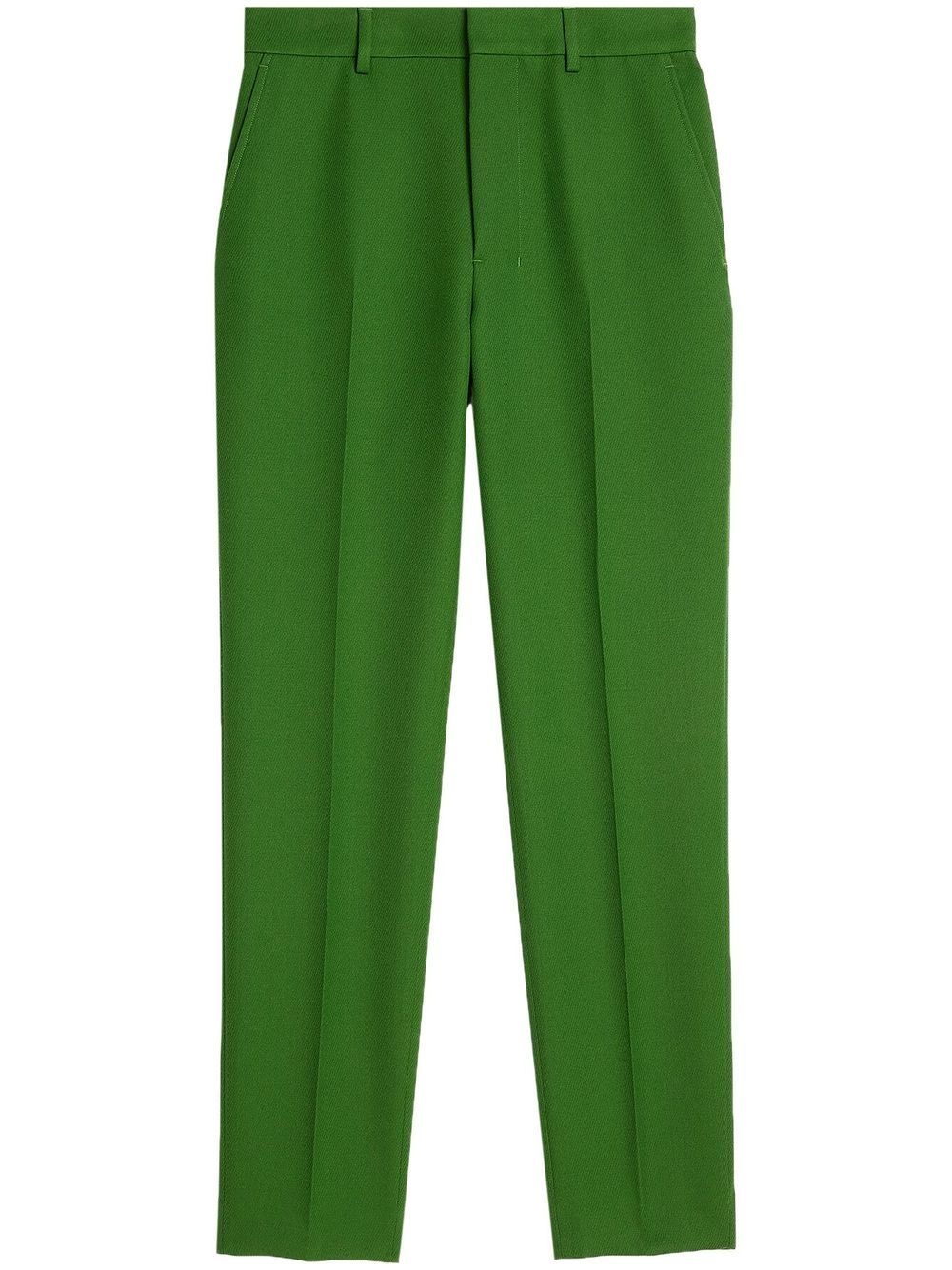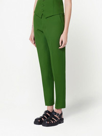 virgin wool tapered trousers green virgin wool concealed front fastening belt loops tapered leg two side slit pockets Imported Composition Lining: Polyester 100% Outer: Virgin Wool 100% Washing instructions Dry Clean Only