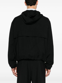 hooded windbreaker Highlights - Black - Twill weave - Drawstring hood - Long sleeves - Elasticated cuffs - Front patch pocket - Drawstring hem - Half front zip fastening - Front press-stud fastening - When buying this unisex item, keep in mind that it is graded in standard men's sizing. Imported Composition Outer: Viscose 55%, Virgin Wool 45% Lining: Polyester 65%, Cotton 35%