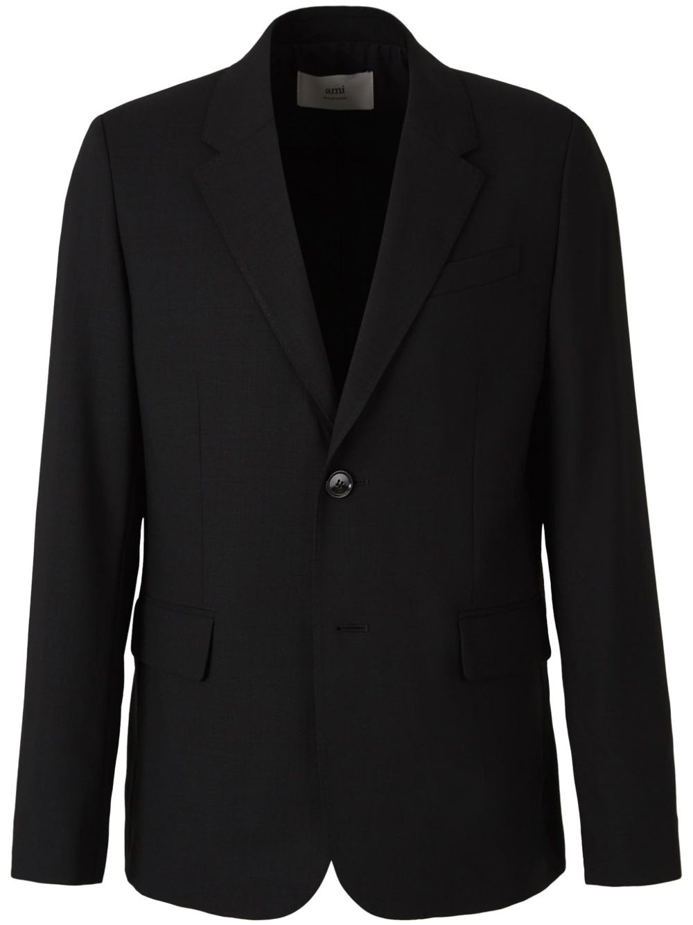 wool blazer Highlights - Black - Front button fastening - Buttoned cuffs - Chest welt pocket - Two side flap pockets Imported Composition Virgin Wool 100%