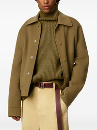 buttoned wool boxy jacket Highlights - Olive green - Snap buttons - Chest patch pocket - Side welt pockets - Embossed logo Imported Composition Outer: Wool 90%, Cashmere 10% Lining: Polyester 65%, Cotton 35%