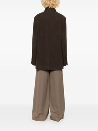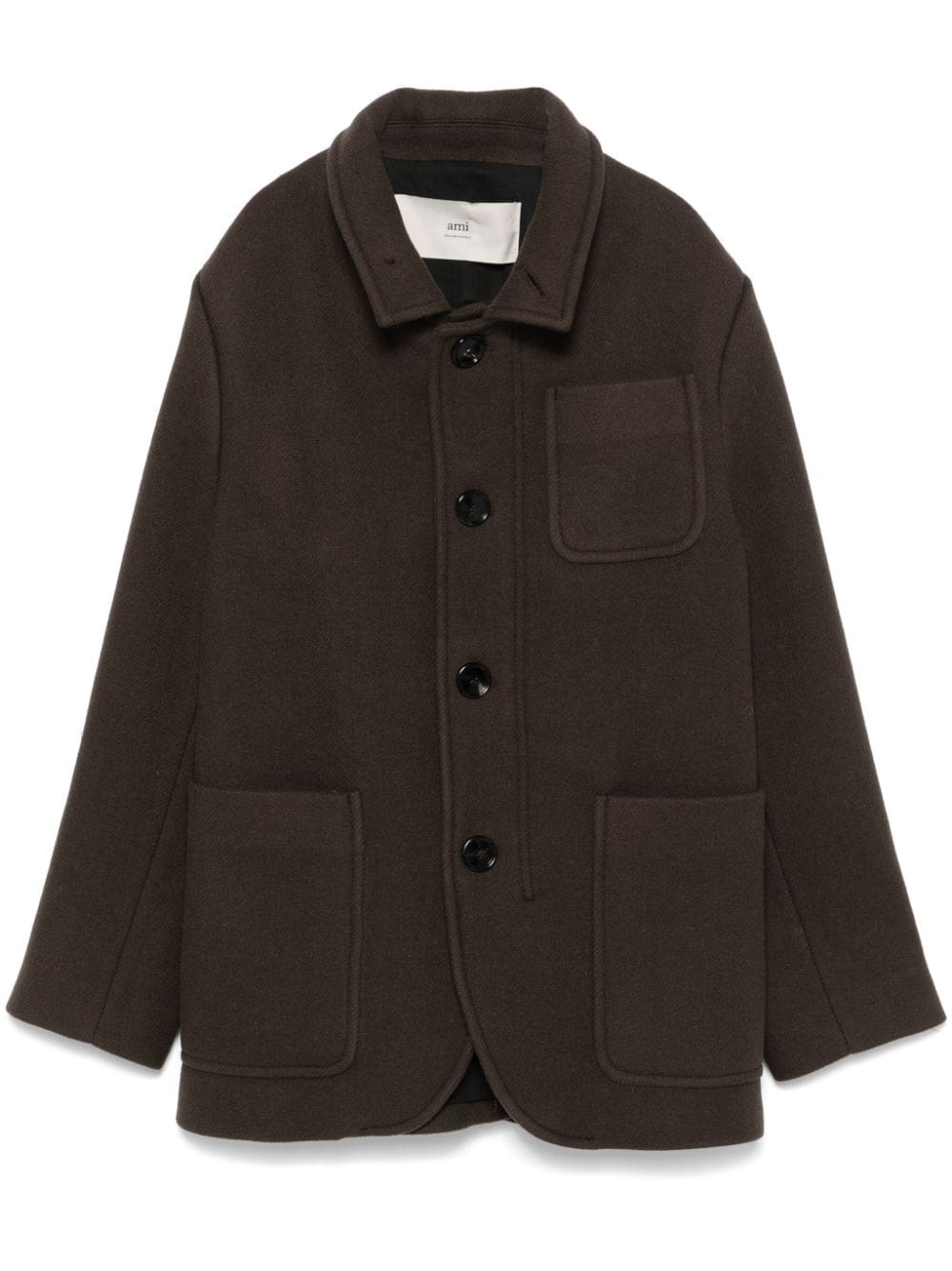 wool coat Highlights - Brown - Virgin wool - Textured finish - Front button fastening - Stand-up collar - Long sleeves - Buttoned cuffs - Chest patch pocket - Two side patch pockets - Central rear vent - Full lining - Straight hem Imported Composition Lining: Polyester 50%, Cotton 50% Outer: Virgin Wool 100% SIZE & FIT Model measurements Height 5 ft 9 in(1.75 m) Bust/Chest 34.64 in(88 cm) Hips 36.61 in(93 cm) Waist 26.37 in(67 cm) FittingInformation Designed to be unstructured, offering a loose fit throughout The vented hem offers movement at the rear Made from a midweight non-stretch fabric