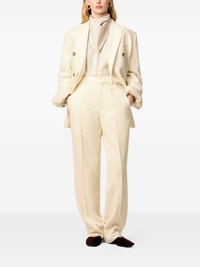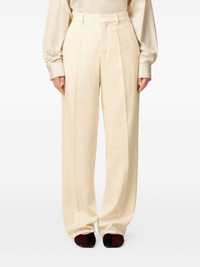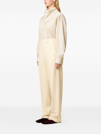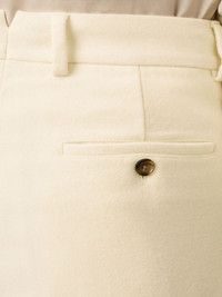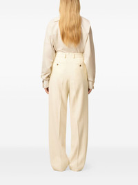 Wool large-fit trousers Highlights - Ivory - Front pleats - Concealed frot fastening - Side side slit pockets - Two rear button-fastening jetted pockets - Belt loops Imported Composition Wool 100% Washing instructions Read Manufacturer Guidelines