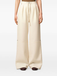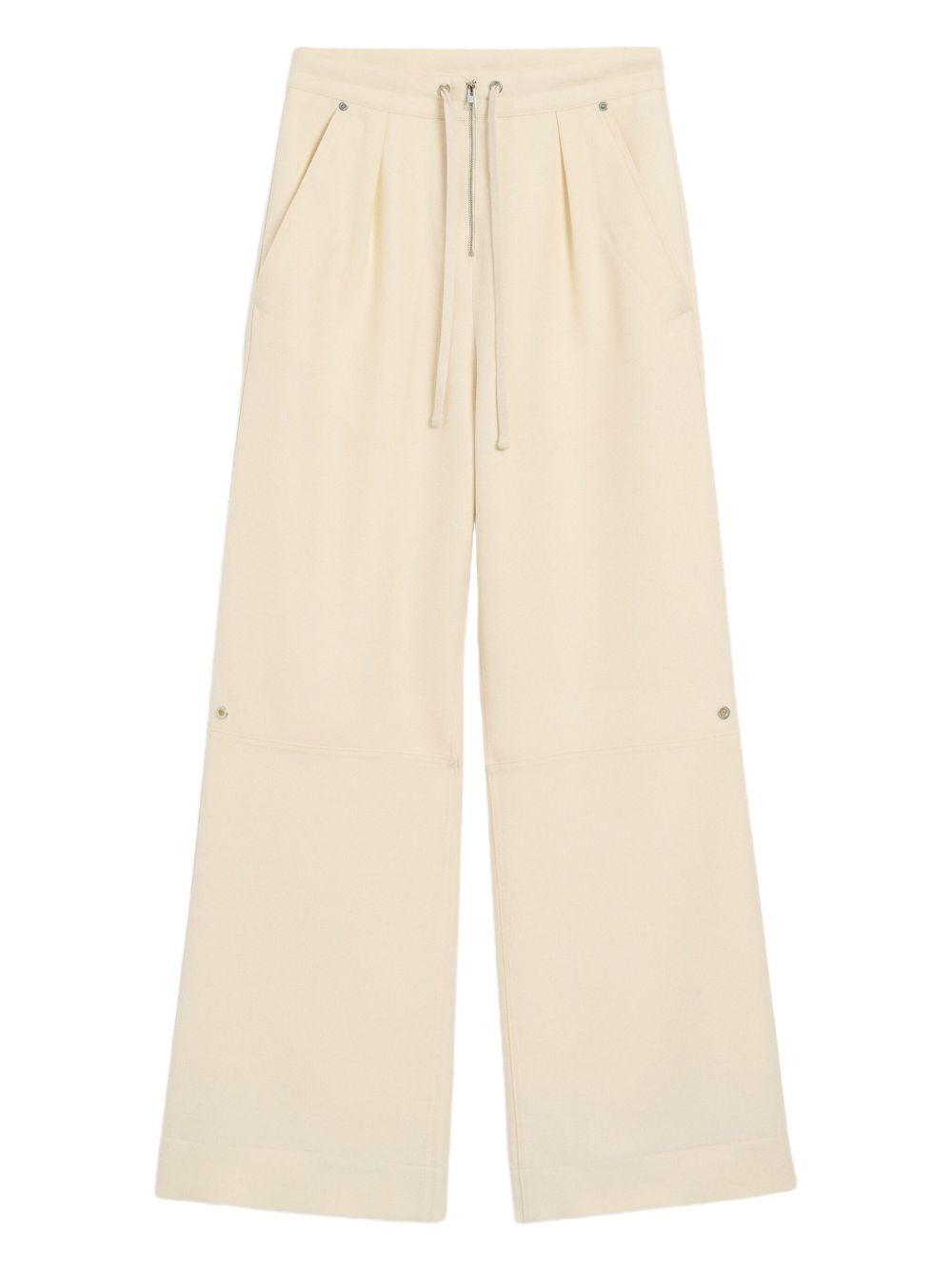 wool zipped trousers Highlights - Ivory - Front zip fastening - Drawstring waist - Two side slash pockets - Two rear patch pockets - Stud details Imported Composition Fabric 100% Washing instructions Read Manufacturer Guidelines