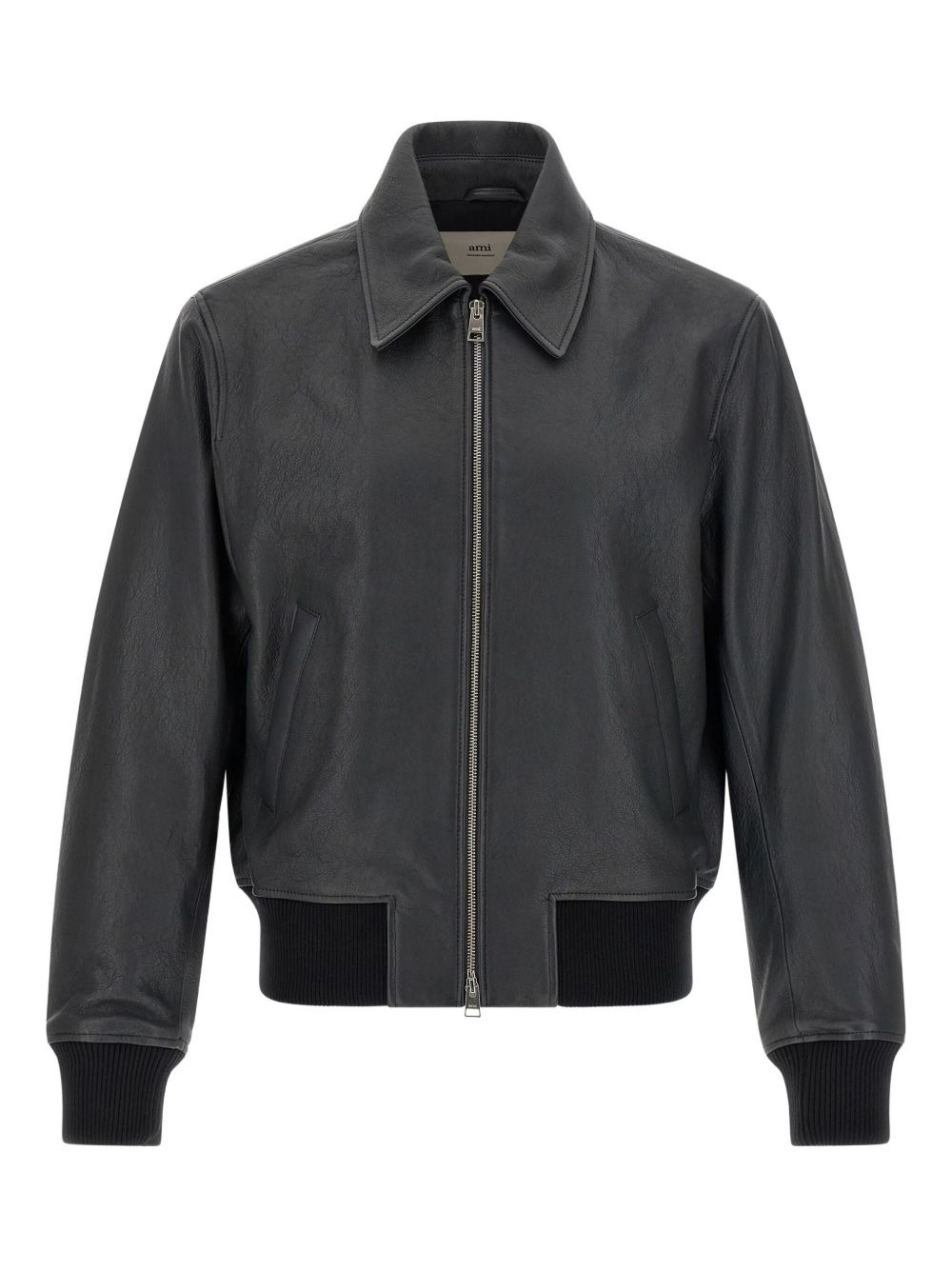 zip-up leather jacket Highlights - Grey - Leather - Zip fastening - Ribbed hem - Ribbed cuffs - Classic collar Imported Composition Leather 100% Washing instructions Read Manufacturer Guidelines