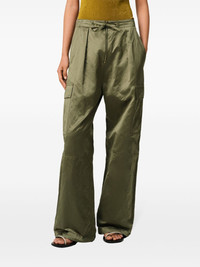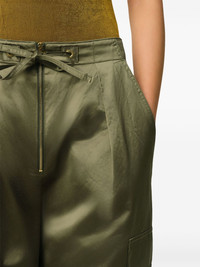 GREEN COTTON SATIN ZIPPED CARGO TROUSERS