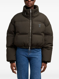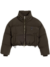 zipped puffer jacket Highlights - Coffee brown - Feather down - High neck - Zip fastening - Signature ami de coeur monogram motif - Concealed hood - Two side welt pockets - Drawstring hem - Long sleeves Imported Composition Outer: Polyamide 98%, Polyurethane 2% Lining: Feather Down 100% Washing instructions Read Manufacturer Guidelines