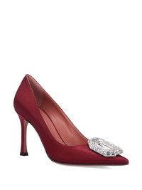 90mm Camelia pumps Highlights - Wine red - Satin weave - High heel - Crystal embellishment - Leather insole - Pointed toe Made in Italy Composition Lining: Calf Leather 100% Sole: Calf Leather 100% Outer: Satin 100%