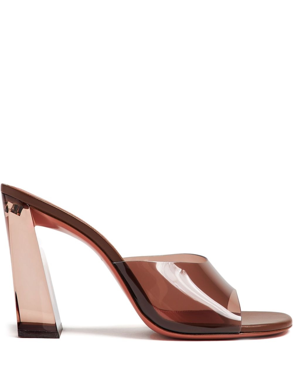 95mm Brigitte sandals Highlights - Brown - Backless - High block heel - Round open toe Made in Italy Composition Sole: Rubber 100% Lining: Calf Leather 100% Outer: PVC 100%