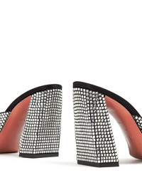 CHARLOTTE CRYSTAL MULE BLACK SATIN AND WHITE CRYSTALS
