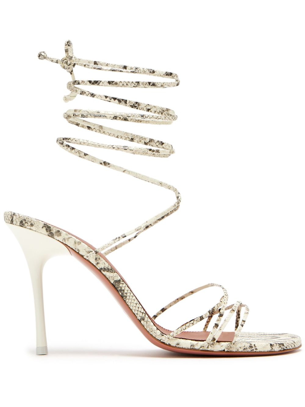95mm Lori sandals Highlights - Cream white - Tie-fastening ankle strap - 95mm stiletto heel - Thin straps - Snakeskin effect Made in Italy Composition Outer: Leather 100% Lining: Leather 100% Sole: Leather 100% SIZE & FIT Measurement HEEL 3.74 in(9.5 cm)