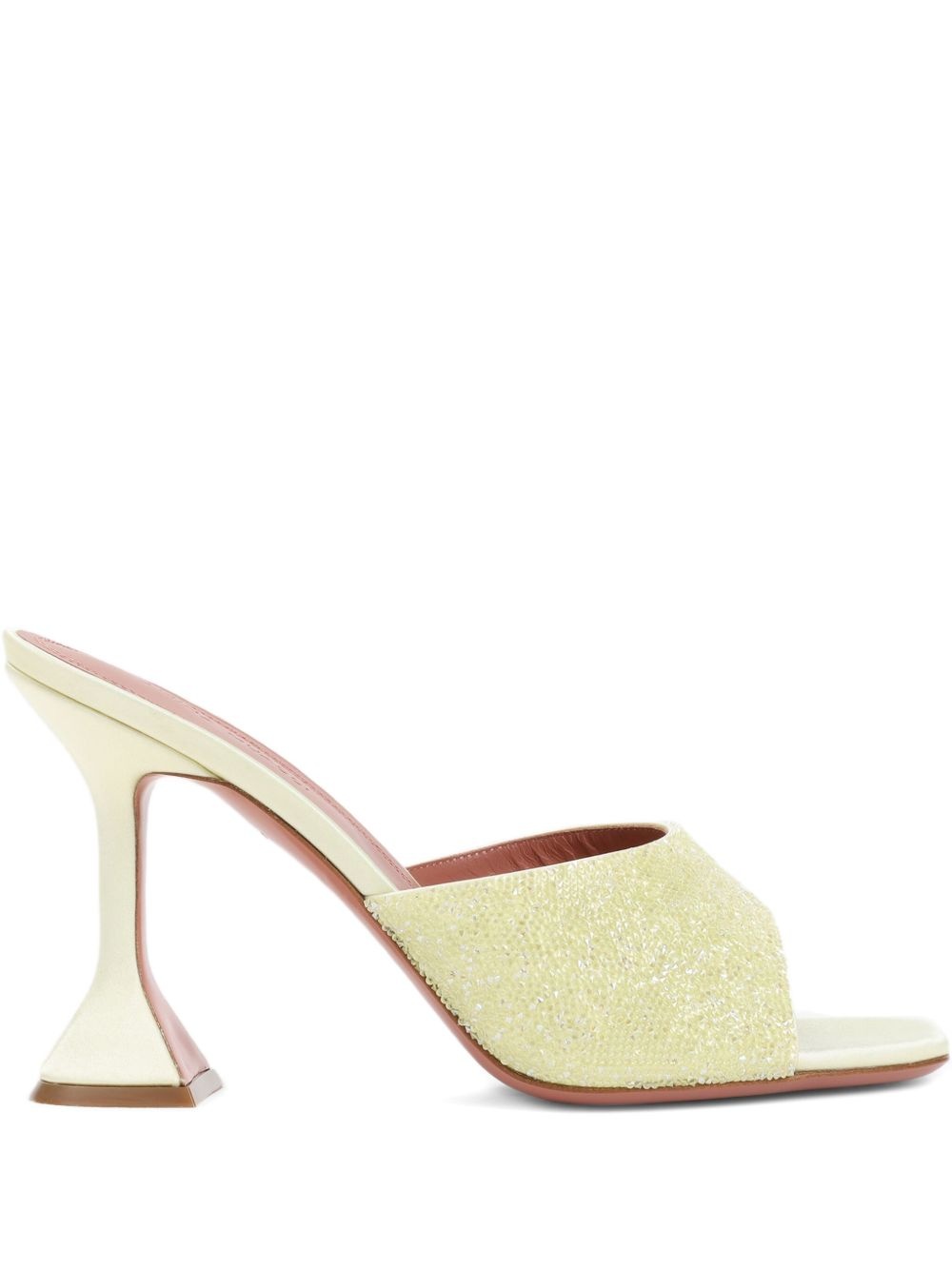 95mm Lupita mules Highlights - Pale yellow - Beaded detailing - Sculptural heel - Open-back design - Wide strap - Padded insole Made in Italy Composition Outer: Satin 100%, Crystal 100% Sole: Rubber 100% Lining: Calf Leather 100% SIZE & FIT Measurement HEEL 3.74 in(9.5 cm)