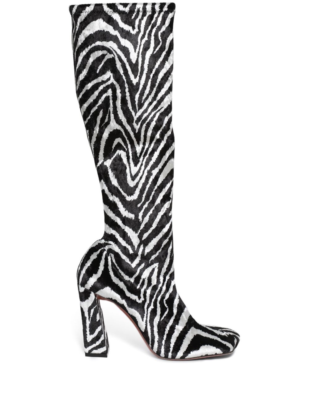 95mm Marine boots Highlights - White - High block heel - Side zip fastening - Zebra print - Square toe Made in Italy Composition Lining: Lambskin 78%, Goat Skin 22% Outer: Polyester 96%, Elastane 4% Sole: Leather 70%, Rubber 30% SIZE & FIT Measurement HEEL 3.74 in(9.5 cm)