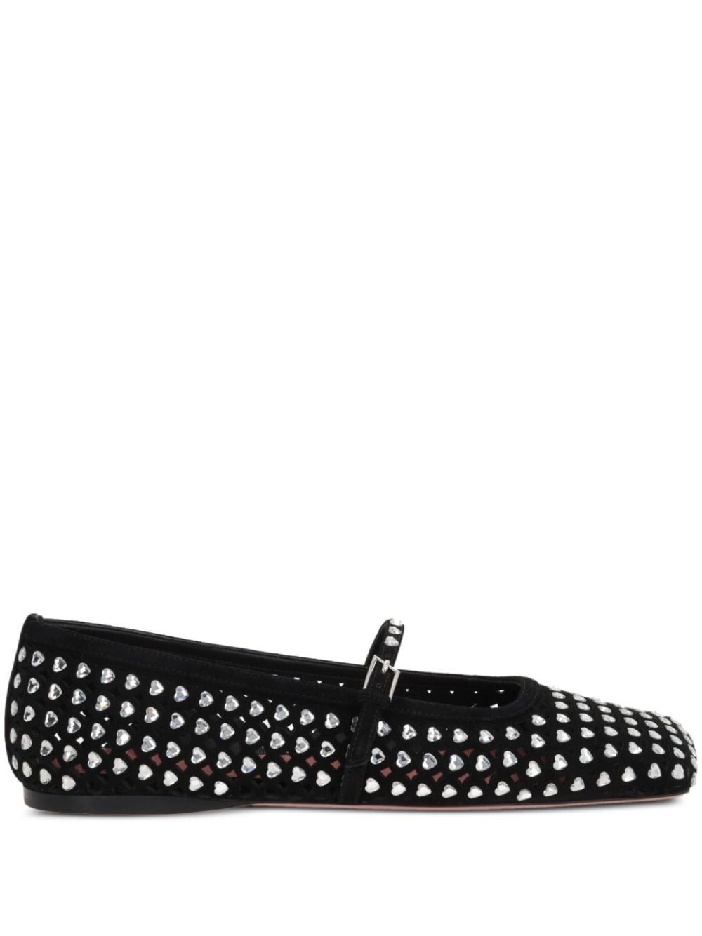 Anne embellished ballerina shoes Highlights - Black - Lambskin - Calf suede - Square toe - Heart-shape crystal embellishment - Branded leather insole - Unlined - Buckle-strap fastening Made in Italy Composition Outer: Lambskin 100% Sole: Leather 70%, Rubber 30% Lining: Goat Skin 100%