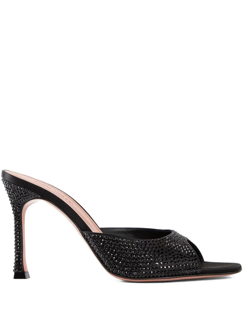 crystal-embellished heeled mules Highlights - Black - Crystal embellishment - Open toe - Stiletto heel Made in Italy Composition Sole: Rubber 100% Outer: Silk 100%, Crystal 100% Lining: Leather 100%