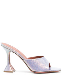 95mm Lupita sandals Amina Muaddi's penchant for fine materials and bold silhouettes punctuates the brand's SS23 collection, as shown by the Lupita mules. Sitting atop a signature sculpted high heel, they're designed in a iridescent purple iteration. Highlights - Lavender purple - Calf leather - Iridescent - Open toe - Slip-on style - High sculpted heel Made in Italy Composition Sole: Calf Leather 100%, Rubber 100% Outer: Calf Leather 100%, Rubber 100% Lining: Calf Leather 100% SIZE & FIT Measurement HEEL 4.21 in(10.7 cm) Sole height 0.39 in(1 cm)