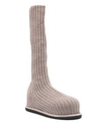 VENEDA STRETCH BOOT FLATFORM TAUPE FUZZY RIBBED KNIT