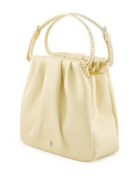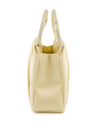 Vittoria Crystal satin tote bag Highlights - Butter yellow - Satin weave - Open top - Two top handles with crystal embellishment - Silver-tone logo lettering - Pleat detailing - Silver-tone logo plaque - Main compartment - Leather lining - Internal logo stamp - Internal slip pocket Made in Italy Composition Outer: Satin 100%, Brass 100% Lining: Lamb Skin 100% SIZE & FIT Measurement DEPTH 2.95 in(7.5 cm) HEIGHT 6.69 in(17 cm) WIDTH 6.29 in(16 cm)